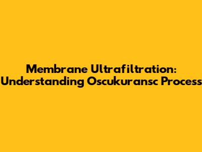Membrane Ultrafiltration: Understanding Oscukuransc Process