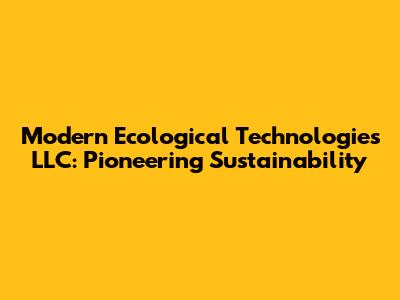 Hey there, eco-conscious readers! Ever heard of Modern Ecological Technologies LLC? Well, if you haven't, you're in for a treat. They are not just your average company; they're at the forefront of the sustainability movement, and I'm totally stoked to tell you all about them. This isn't just about slapping a green label on things; it's about fundamentally changing how we approach technology and its impact on the planet. Get ready to dive into the world of innovative solutions and discover how Modern Ecological Technologies LLC is making a real difference. We'll explore their mission, the groundbreaking technologies they're developing, and how they're paving the way for a more sustainable future. So, buckle up, because we're about to embark on a journey into the heart of eco-innovation!