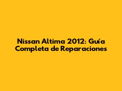 Nissan Altima 2012: Guía Completa De Reparaciones