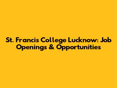 St. Francis College Lucknow: Job Openings & Opportunities