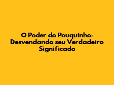 O Poder Do Pouquinho: Entendendo Seu Verdadeiro Significado