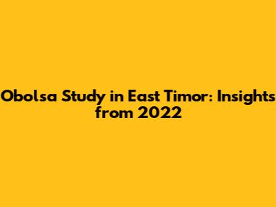 Obolsa Study In East Timor: Insights From 2022