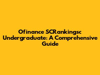 Ofinance SCRankingsc Undergraduate: A Comprehensive Guide