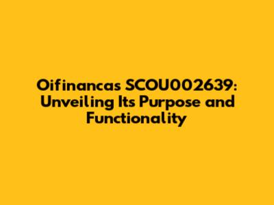 Oifinancas SCOU002639: What Is It And What Does It Do?