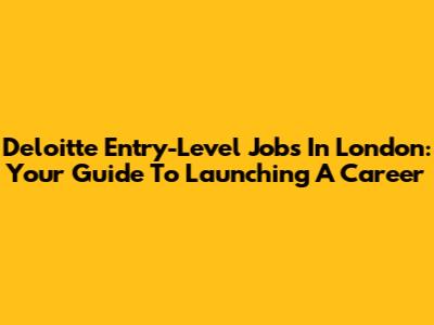 Deloitte Entry-Level Jobs In London: Your Guide To Launching A Career