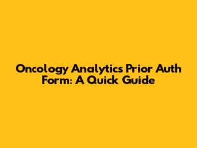 Oncology Analytics Prior Auth Form: A Quick Guide