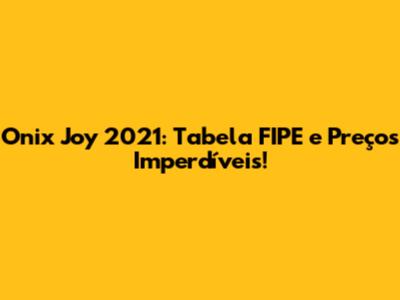 Onix Joy 2021: Tabela FIPE E Preços Imperdíveis!
