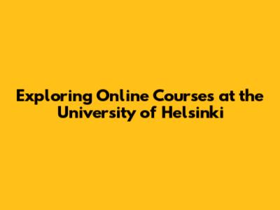 What Online Courses Does Helsinki University Offer?