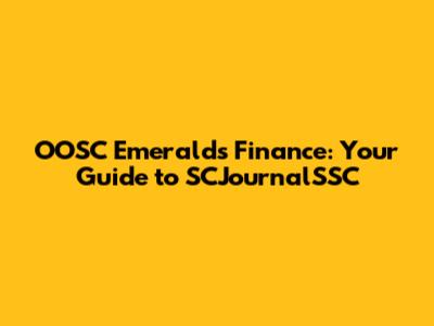 OOSC Emeralds Finance: Your Guide To SCJournalSSC