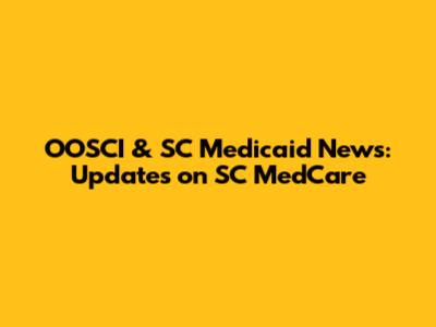 OOSCI & SC Medicaid News: Updates On SC MedCare