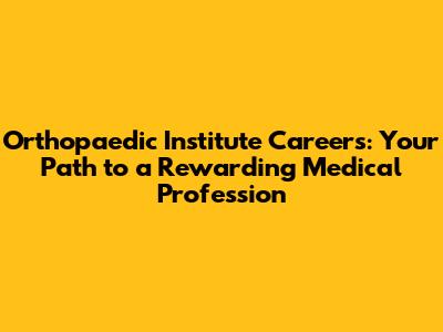 Orthopaedic Institute Careers: Your Path To A Rewarding Medical Profession