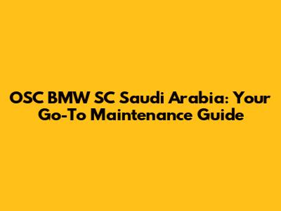 OSC BMW SC Saudi Arabia: Your Go-To Maintenance Guide