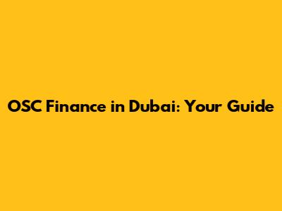OSC Finance In Dubai: Your Guide