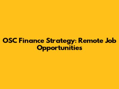 OSC Finance Strategy: Remote Job Opportunities