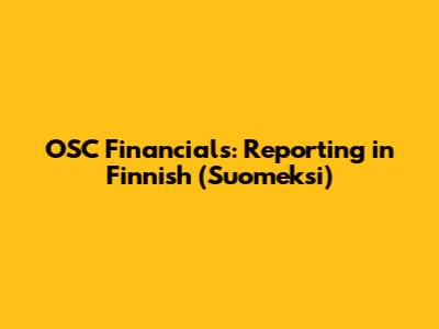 OSC Financials: Reporting In Finnish (Suomeksi)
