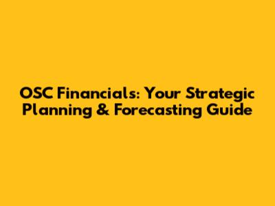OSC Financials: Your Strategic Planning & Forecasting Guide