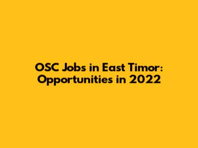 OSC Jobs In East Timor: Opportunities In 2022