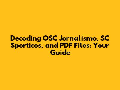 Hey sports fanatics, data crunchers, and anyone curious about the digital world! Let's dive deep into the fascinating realms of OSC Jornalismo, SC Sporticos, and PDF files. I know, sounds like a mouthful, but trust me, understanding these elements can unlock a wealth of information and enhance your overall experience. We're going to break down each component, explore how they interact, and equip you with the knowledge to navigate them like a pro. So, grab your virtual seat, and let's get started!
