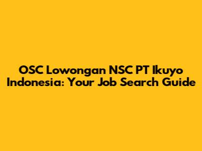 OSC Lowongan NSC PT Ikuyo Indonesia: Your Job Search Guide