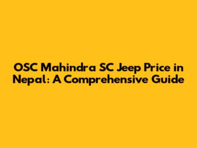 OSC Mahindra SC Jeep Price in Nepal: What You Need to Know