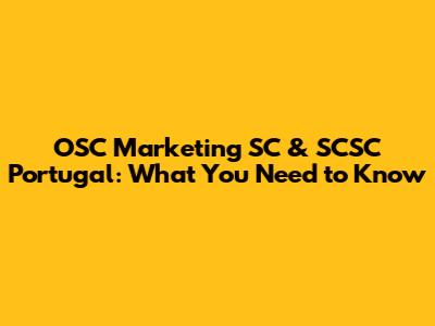 OSC Marketing SC & SCSC Portugal: What You Need To Know
