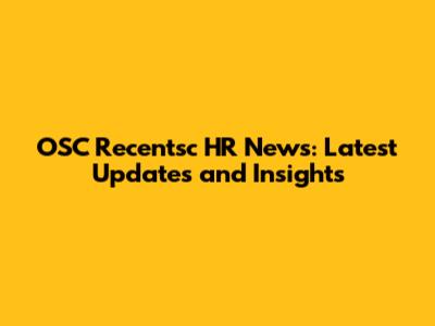 OSC Recentsc HR News: Latest Updates And Insights