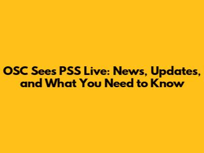 OSC Sees PSS Live: News, Updates, And What You Need To Know