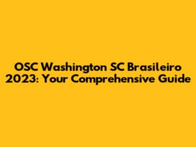 OSC Washington SC Brasileiro 2023: The Ultimate Guide