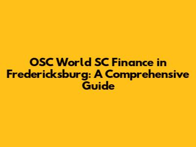 OSC World SC Finance In Fredericksburg: A Comprehensive Guide