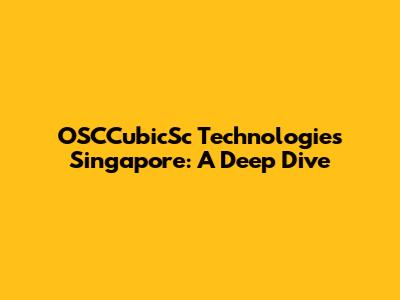 OSCCubicSc Technologies In Singapore: A Deep Dive