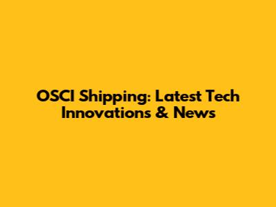 OSCI Shipping: Latest Tech Innovations & News