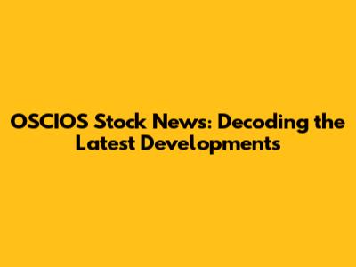 OSCIOS Stock: Latest News, Analysis & Investment Insights