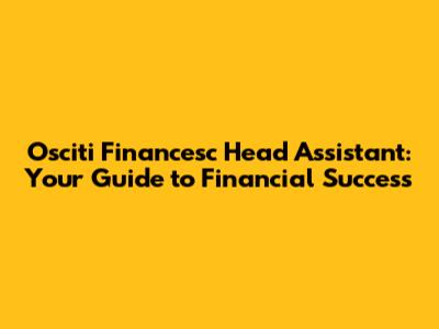Osciti Financesc Head Assistant: Your Guide To Financial Success