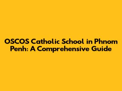 OSCOS Catholic School In Phnom Penh: A Comprehensive Guide