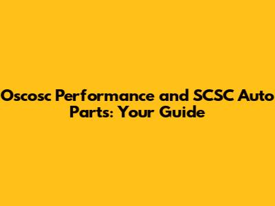 Oscosc Performance & SCSC Auto Parts: Your Guide