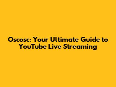 Oscosc: Your Ultimate Guide To YouTube Live Streaming