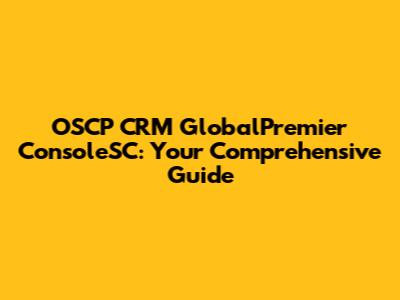 OSCP CRM GlobalPremier ConsoleSC: Your Comprehensive Guide