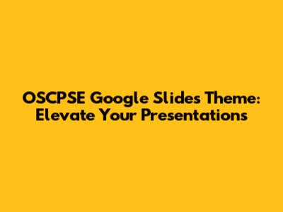 The OSCPSE Google Slides theme is a pre-designed template that you can use within Google Slides. It includes a variety of slide layouts, color schemes, and design elements that are carefully crafted to create a cohesive and visually appealing presentation. The theme is designed to be flexible and customizable, allowing you to adapt it to suit your specific needs and branding. Instead of starting from a blank slate, the OSCPSE theme provides a solid foundation, saving you time and effort while ensuring a professional look.