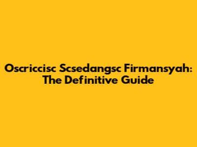 Oscriccisc Scsedangsc Firmansyah: The Definitive Guide