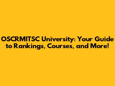 OSCRMITSC University: Ranking, Courses, And More!