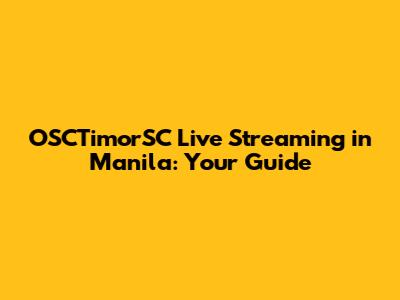 OSCTimorSC Live Streaming In Manila: Your Guide