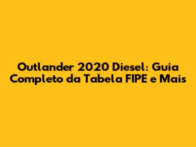 Outlander 2020 Diesel: Tabela FIPE E Tudo Que Você Precisa Saber