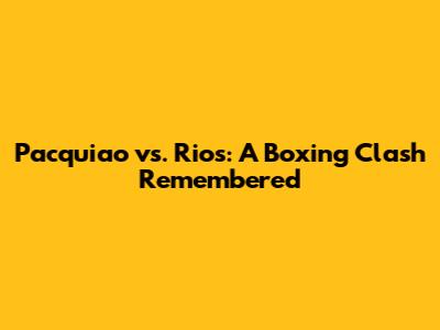 Pacquiao Vs. Rios: A Boxing Clash Remembered