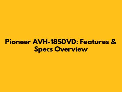 Knowing the specifications of the Pioneer AVH-185DVD is crucial for understanding its capabilities and limitations. The specifications cover aspects such as the display resolution, audio output, and supported formats. Understanding these details will help you determine if this head unit meets your specific requirements. We'll break down each specification to provide a clear and concise overview. Let's explore the technical details that make this head unit tick.