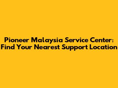Pioneer Malaysia Service: Find Your Nearest Support Center