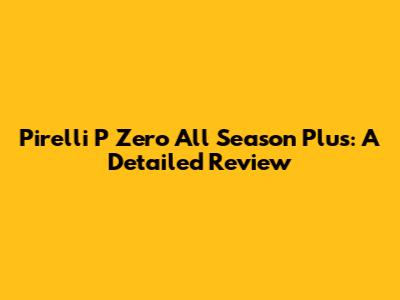 Pirelli P Zero All Season Plus: A Detailed Review
