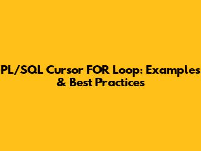 PL/SQL Cursor FOR Loop: Examples & Best Practices