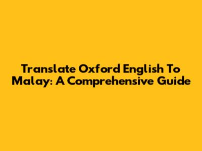 Translate Oxford English To Malay: A Comprehensive Guide