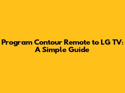 Step-by-Step Guide: Programming Your Contour Remote to Your LG TV