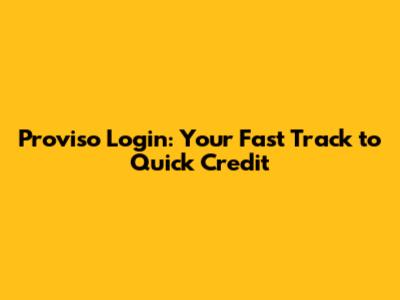 Proviso Login: Your Fast Track To Quick Credit